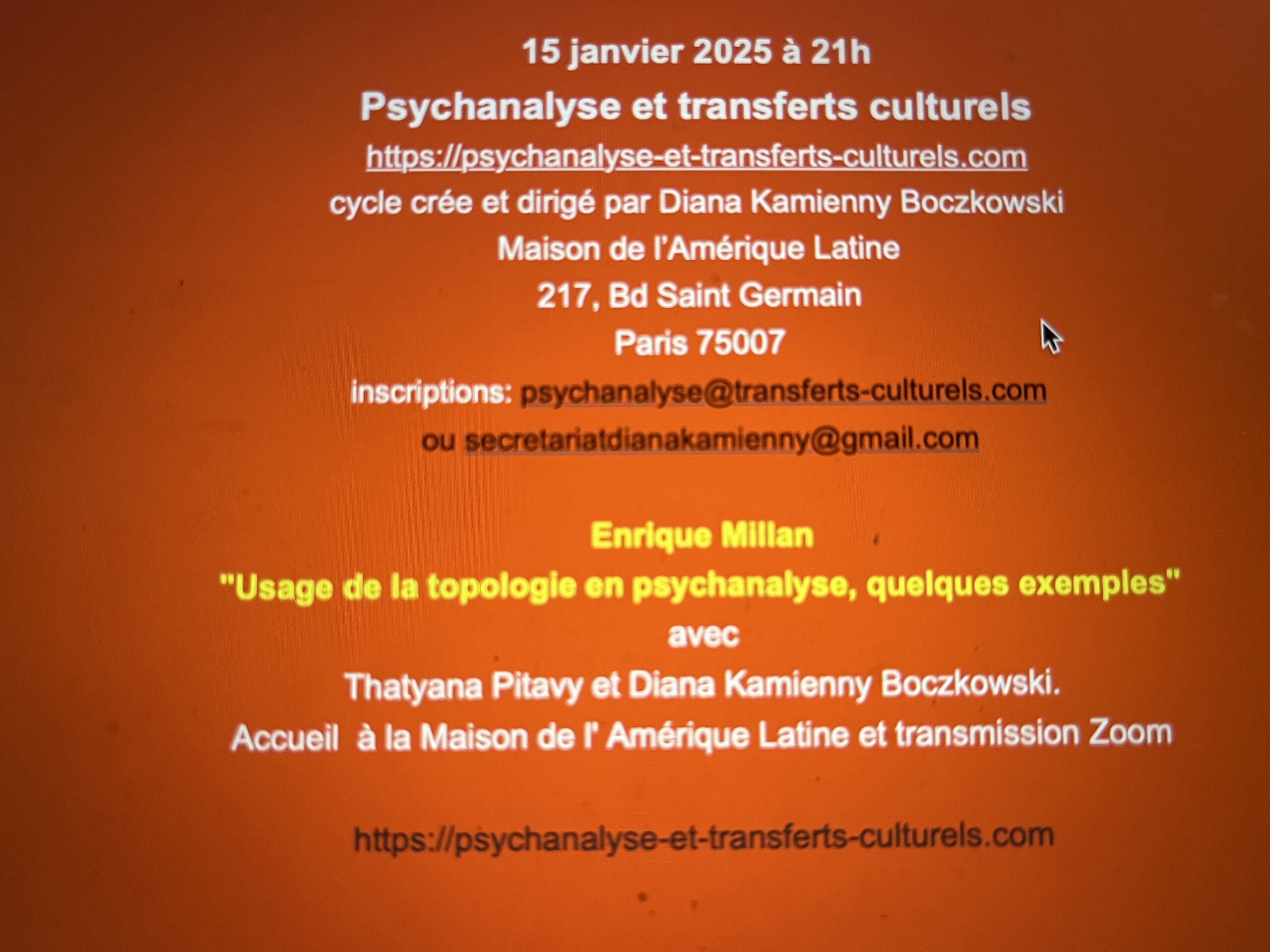 En poursuivant le sujet du cycle 2024, “Traduction et symptôme” nous introduirons l’évolution de la conception du symptôme par l’introduction de certains éléments de la topologie que Lacan fait et dont les psychanalystes qui le suivent essayent de s’en emparer. Ceci pour répondre à différentes questions cliniques que voici. Pour quelle raison certains symptômes sont-ils si difficiles de modifier par le transfert et l’interprétation, ou l’acte. Quel abord envisager avec des patients qui consultent pour des symptômes fortement articulés à une identification? Quel place faire à la relation entre identification et symptôme? Peut-on promouvoir un sinthome chez un analysant?